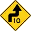 | File:MUTCD-CA W4-10L.svg | W4-10L | Combination Turn/Advisory Speed | hazard=curve curve=hairpin maxspeed:advisory=25 mph