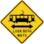 W82-1 | Light Rail Transit (Trolley) Crossing / Look Both Ways | railway=tram_crossing or railway=tram_level_crossing