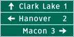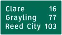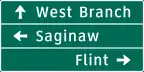 Series D of the Michigan Manual on Uniform Traffic Control Devices is for directional signs. The following tables display only the signs specific to the sign manual in Michigan, including signs using the Clearview typeface for text; consult MUTCD/D for directional signs in the national standard.