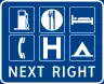 D9-18b | Motorist Services Sign 3 Symbols Next Right | ||