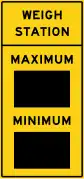 W13-3d | Weigh Station Maximum and Minimum Speed | maxspeed:advisory=* minspeed:advisory=* on the ramps and the service roads within the weigh stationamenity=vehicle_inspection around the weigh stationamenity=weighbridge at the truck scales |