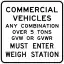 R13-H1 | Commercial Vehicles Any Combination… | maxweight:hgv=5 st maxweightrating:hgv=5 st maxweight:hgv_articulated=5 st maxweightrating:hgv_articulated=5 st maxweight:tourist_bus=5 st maxweightrating:tourist_bus=5 st maxweight:coach=5 st maxweightrating:coach=5 st on any roadway that does not enter the weigh station