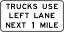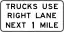 | R4-H6b | Trucks Use Right (Left) Lane Next __ Mile | hgv:lanes=no|designated for __ miles