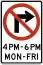 | R3-1g | No Right Turn – Time and Day | type=restriction restriction:conditional=no_right_turn @ (Mo-Fr 16:00-18:00)