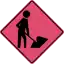 This series includes warning signs for temporary traffic control zones, i.e., construction zones, as well as for incident management areas. Whereas a regulatory sign appears the same inside and outside a construction zone, a temporary warning sign has an orange background instead of the usual yellow, and an incident management warning sign has a fluorescent pink background. California and Texas place construction warning signs in separate series C and CW, respectively. Incident management area signs are not to be confused with the emergency management signs of Series EM.