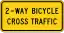 | W16-21P | 2-Way Bicycle Cross Traffic (plaque) | highway=cycleway oneway=no across the roadway