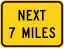 | W16-3aP | XX Miles (1-line plaque) | distance=2 mi on the traffic sign