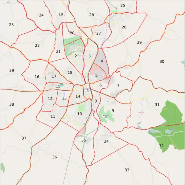 - All public institutions are present (Churches, sports facilities, venues, schools, hospitals, city hall) - Key: p