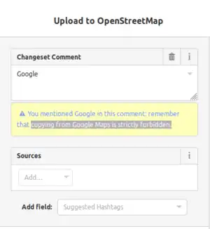 OSM contributors are reminded never to add data from any copyrighted sources (e.g. Google Maps or printed maps) without explicit permission from the copyright holders.