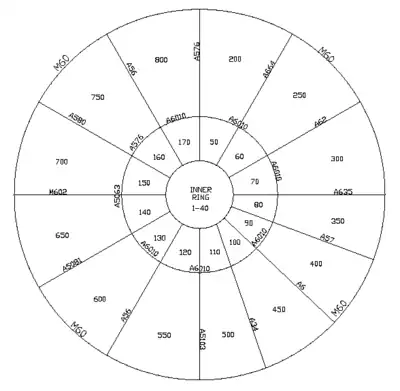The above schematic drawings break down Manchester into a set of logical sectors. Each sector is bounded by major or prominent highways. There are three rings identified within the M60 orbital motorway. A nicer version woth the OSM logo can be downloaded here (4MB)