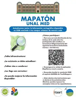 Uno de los principales requisitos para mantenerse activos como capítulo de YouthMappers, es la ejecución de al menos dos actividades al año, por lo cual el semillero propuso dos Mapatónes durante este año, esta actividad comprende la actualización o creación de cartografía base o temática de la de los diferentes núcleos que componen la Universidad Nacional - Sede Medellín.