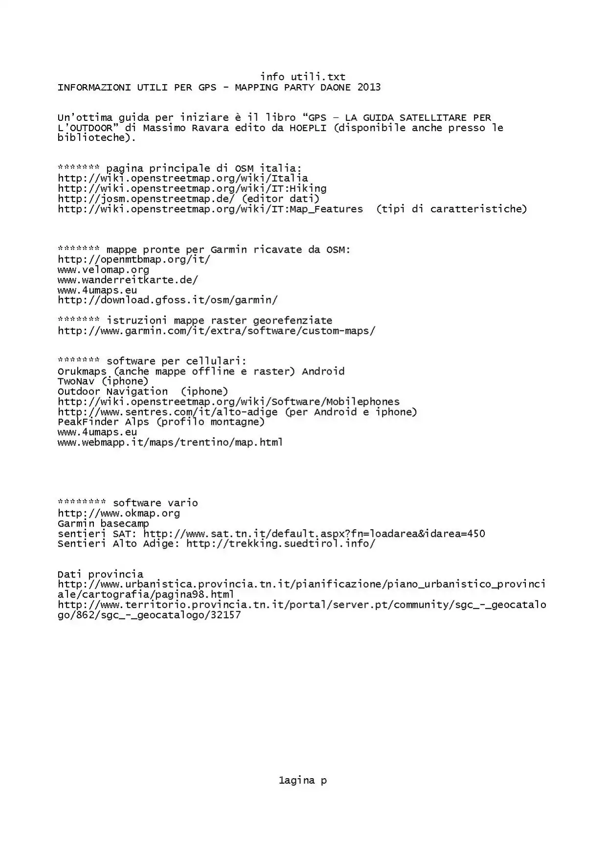 - 1) per i principianti: corso introduttivo al GPS in ambiente montano
