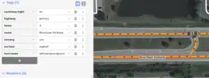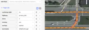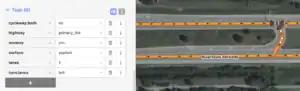 As mentioned above, the Michigan Left replaces the traditional left turn maneuver with a right turn and u-turn maneuver. Michigan Lefts in OpenStreetMap are digitally represented by (i) using the turn:lanes tag and (ii) creating No Left Turn turn restrictions. Examples of Michigan Lefts are depicted in the table below.