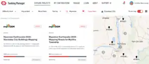 In the event of natural disasters, we work to support emergency response and recovery efforts by mobilizing OSM volunteers—both in Myanmar and around the world—to quickly map critical data that can assist organizations leading the response. This often includes features such as building footprints, flood-prone infrastructure, or other requested elements that can be feasibly mapped by predominantly remote OSM volunteers using current high-resolution satellite imagery. We manage and coordinate many of our mapping campaigns using the HOT Tasking Manager Here you can also explore and join active mapping campaigns launched by myOSM.