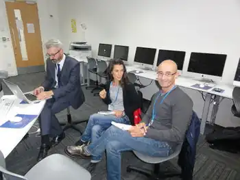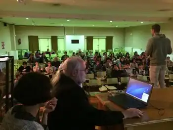 | Part of the team in Kingston upon Hull, UK Meeting in Kingston upon Hull: Mapping, [[ES:MychOSM/A Guarda#Nuestras traduciones|Translating], and produce weeklyOSM |