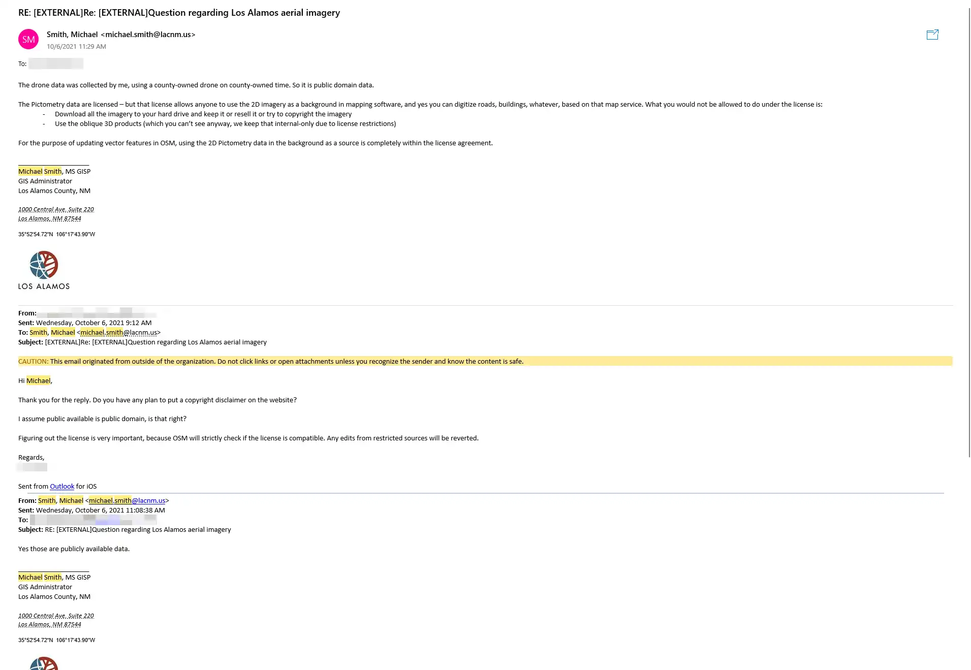 Los Alamos County GIS Administrator Michael Smith has approved usage in OpenStreetMap of the imagery as public domain data. iD and other software using the Editor Layer Index now have access to this imagery.[1]