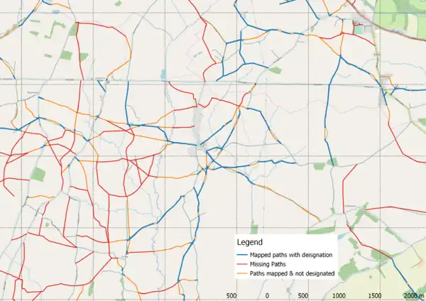 • Just short of 25 km of new or altered rights of way with designations [4]. To put this in perspective Derbyshire has perhaps 5000 km of paths, so maybe 0.5%!