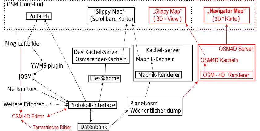 - links the 3D data to OSM data. The current version of OSM will have to be the version to link against in the case, that several states (representations of different historic versions) do exist in the database