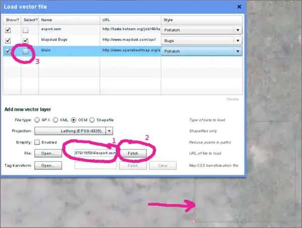 - In the Tasking Manager, change from Edit with JOSM to Edit with Potlatch 2. Potlatch should open in a new tab.