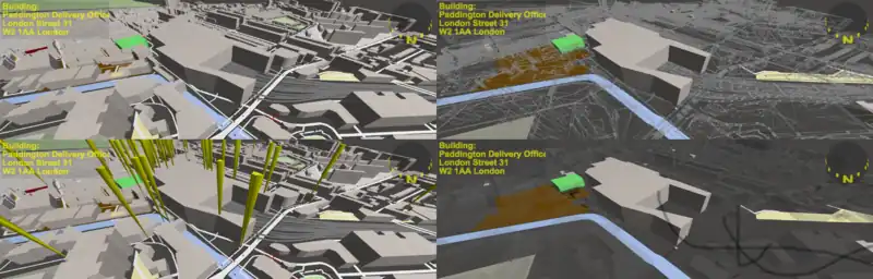 Underground objects shouldn’t be seen above, bridges should be raised. Now the tag:level * 4m is added, also the tag:layer * 0.5m. That’s not always correct and often looks strange. We need an AI to interpret this tags nicely, don’t we? It is also a very first step to indoor mapping. The move controls now allow to look underground now.
