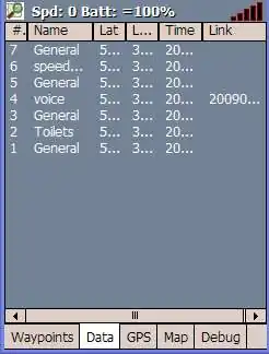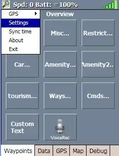 The Waypoints tab allows quick entry of common Waypoints or Points of Interest (POI) during tracking, and access to some special Commands. Selecting a Waypoint here will write a point with the current coordinates into the GPX log file. The Waypoints are saved in a separate GPX file named like YYYYMMDD-HHMMSS-wp.gpx. The points will then be visible in JOSM when the file is imported.