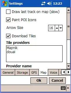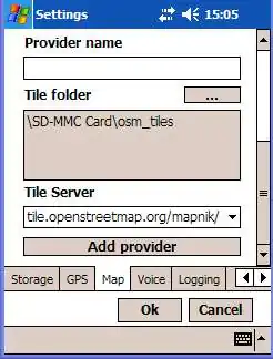 To change the settings, select the name in the Tile providers list, and right-click (or click & hold, depends on your PDA). There is a pop-up menu with Get, Delete.
