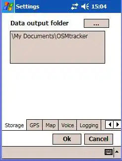 First setup the application, goto file→settings and choose a data folder path (preferable a storage card folder location I made an OSMtracker folder on my sd-card (the wavs, gpx and osm tiles are stored here)
