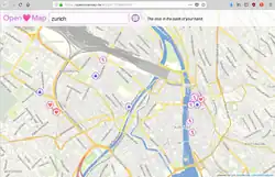 OpenLoveMap (or Open♥Map) is a map which shows some POIs related to love (...in the "adult" sense of the word). Its tagline is The love in the palm of your hand.