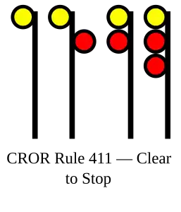 | 415 | Advance Clear to Stop | Proceed, next signal is displaying Clear to Stop, be prepared to stop at second signal. |
