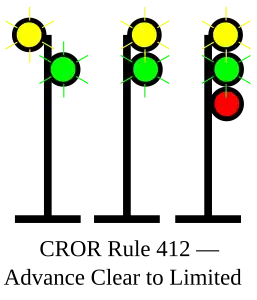 | 412 | Advance Clear to Limited | Proceed, approaching second signal at LIMITED speed. |
