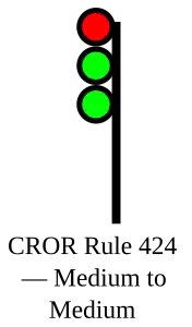 | 424 | Medium to Medium | Proceed, MEDIUM speed passing signal and through turnouts, approaching next signal at MEDIUM speed. | ![]() |