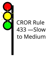 | 433 | Slow to Medium | Proceed, SLOW speed passing signal and through turnouts, approaching next signal at MEDIUM speed. | ![]() |