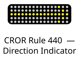 | 440 | Direction Indicator | Flashing arrow indicators attached to block signals when illuminated, identify that the route at the next controlled location is displaying a permissive signal and the route is lined and secured as indicated by the direction of the arrow. |