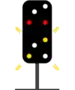 | 281c | Limited Clear | Proceed at Limited Speed until entire train clears all interlocking or spring switches, then proceed at Normal Speed. | Yellow triangle marker is a fixed signal. | ![]() ![]() ![]() |