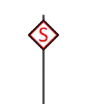 | 298a | Delayed in Block Sign | Visual reminder to push-pull trains that Rule 504(b) applies to station stops made at this station. | Located at or near the end of passenger stations in blocks between distant signals and home signals in territory where push-pull trains operate, cab signals are not in service, and the maximum speed of trains exceeds 30 MPH. | ![]() ![]() |
