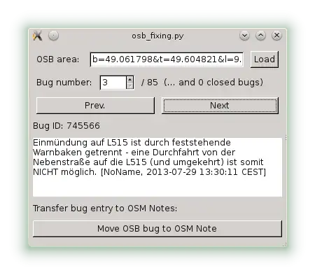 - jump through the bugs. Call Josm load and zoom, display the current bug