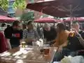 The Anchor (Map), 34 Park Street, SE1 9EF. It has a large beer garden, views of the Thames, serves food and is near a pirate ship.