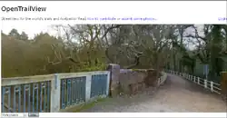 OpenTrailView (OTV) here is a platform to upload 360 degree panoramas of off-road routes such as footpaths and cycle paths. The aim is to create a similar piece of software to Google Street View but for footpaths, using open licencing, and using underlying OSM data to link panoramas so that users can navigate from one panorama to the next. As of 2019 this project has restarted and was presented at FOSDEM 2019.