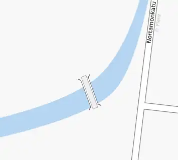 This small river in the center of [Rauma] is edged with murals. They are absolutely straight and they have sharp corners. You can also see that the bridge is centered in the editor but not in Osmarender because the river is shifted. --Plenz 07:04, 23 November 2007 (UTC)