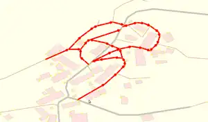 Parfois des segments de routes ne sont pas du tout sortis du script. Ce symptôme peut même toucher des portions entières de commune. Ce sont des erreurs au niveau du cadastre en lui-même. Il n'y a pas d'autre choix que de tout dessiner. Utilisez pour ça l'outil de digitalisation, il est situé dans la bande verticale à gauche de la fenêtre.