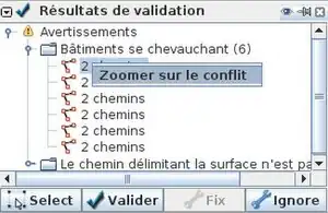 - on lance une "Validation" avec JOSM.