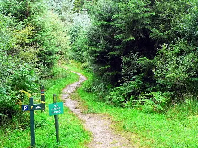A path through an urban forest as in "there is something used for transport"; walking is possible on dry and non-winter days with a sure foot, but you wouldn't route anyone there.