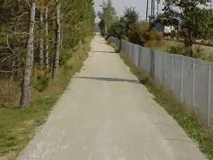 3m wide gravel path. Local knowledge [1] indicates that this is a shared-use path (“It is open to bicyclists, hikers, joggers and horseback riders in the spring, summer and fall and to snowmobilers, skiers and dog sledders during the winter...No ATV’s are allowed on the trail.”)