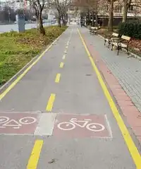 An urban path on which motorized vehicle access is forbidden. As above but no guarantees on passability. Likely without restrictions on horses. Access on foot and on a bicycle is known to be legal and possible.