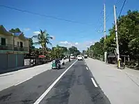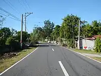 This fourth level of non-motorway roads should be applied to roads connecting to small municipalities (with populations below 10,000) and most barangays in rural areas, and collector roads (usually within the same barangay or district) in urban areas. Examples are the majority of roads between barangays, and the largest roads of large gated communities with multiple entry/exit points like Ayala Alabang, Dasmariñas Village or BF Homes, or local streets with significant amounts of through traffic in central business districts or huge gated industrial parks with multiple entrances. If a tertiary route is physically larger or carries more traffic than other tertiaries, or serves three or more barangays or districts with minimal alignment jogs, a tertiary can be promoted to a secondary, taking most factors in account, most importantly, connectivity.
