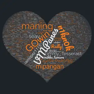A heart-shaped wordcloud of OSM usernames who mapped at least 1 school in the Philippines, as of 23rd October 2021.