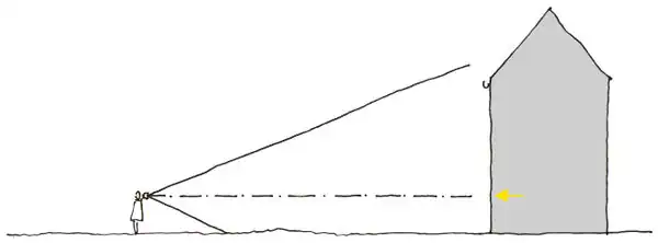 If you place a leveling staff perpendicular to the facade, you can roughly (approx. 5% deviation) determine the dimensions of a facade.