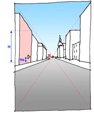 In advance you have to measure the distance 'He' between own eye height and the floor.