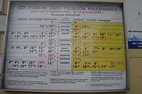 departures_board=* – tablica na przystanku, dworcu autobusowym, dworcu kolejowym lub lotnisku pokazująca informacje o odjazdach lub odlotach.