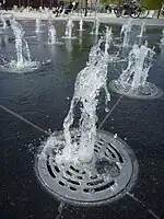Obszar rozbryzgowy lub basen z rozpylaczem. Jest to rodzaj fontanny instalowany głównie w posadzkach, chodnikach czy placach. | |